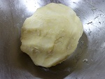 【成形】パイ生地を9等分にしてから丸め、それぞれ打ち粉(分量外)をしながら直径約9~10cm約2mm厚に伸ばします。(油分が溶けないように手早く作業します。生地が柔らかくなってきたら冷蔵庫で冷やしながら伸ばします)