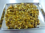- 玉ねぎとクルミ、レーズンはみじん切りにしておきます。