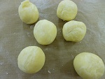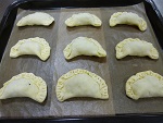 フィリングを9等分にし、生地の真ん中にのせて半円になるように折り、フォークで口を閉じます。