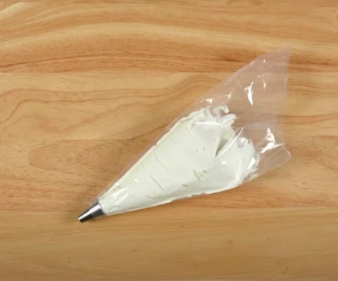生クリームを絞り、パレットナイフで表面をきれいにします。
