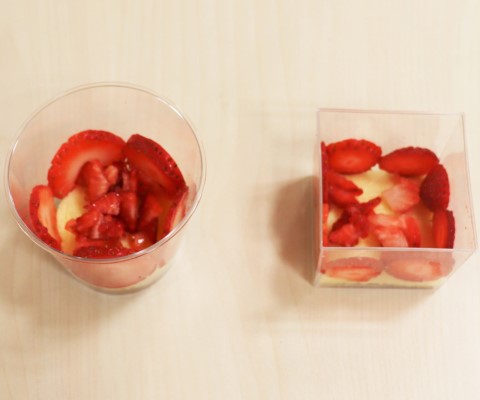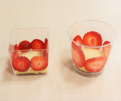 カップにスライスしておいたいちごを側面にしっかりとつけます。