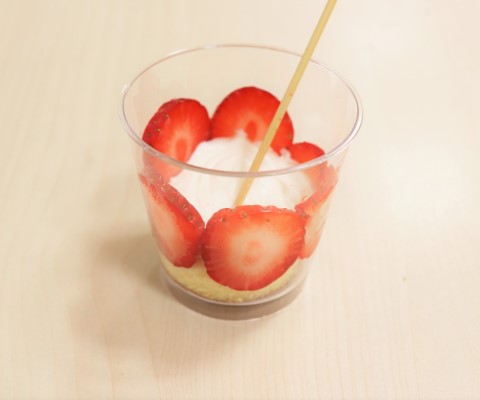 余ったいちごは小さくカットしカップの真ん中に入れます。