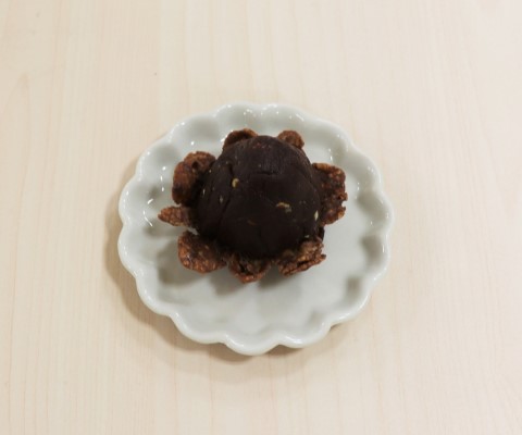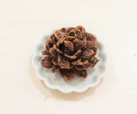 ●ナッツを入れると食感がよくなりますが、細かく刻まないとコーンフレークは差し込みにくい場合がありますのでご注意ください。