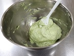室温に戻したバターをクリーム状にし、⑥と混ぜ合わせた後に⑤の抹茶ペーストを少しずつ加えてよく混ぜ合わせます。