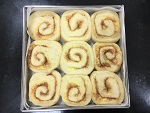 ⑤の生地を9等分にし、型に並べます。35℃位の温かい場所で約2倍の大きさになるまでラップ材をかけて30~40分発酵させます。(2次発酵)