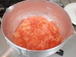 はじめに準備をしたりんごの中に皮も入れ、りんごがしんなりしてくるまで中火で煮ます。