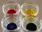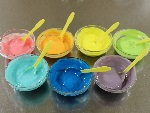 - 小さな器に少量のぬるま湯を入れ、食用色素をそれぞれ溶かしておきます。