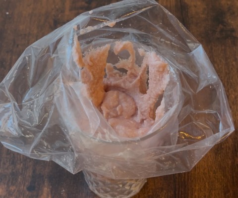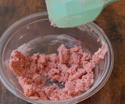 ①にミックス粉(※脱酸素剤は取り除いてくたさい)を入れます。
