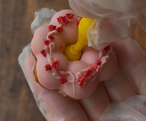 デコペンが固まらないうちにフリーズドライいちごをつけます。