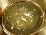 - ゼラチンリーフはたっぷりの冷水(分量外)に入れて、1~2分ふやかしておきます。
