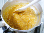 - グラニュー糖を溶かした鍋に生クリームを加える際、くれぐれもヤケドには注意をしてください。