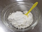 ボウルに粉糖(シュガーパウダー)、コーンスターチ、クエン酸を入れてよく混ぜて中央をくぼませておきます。