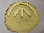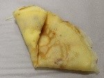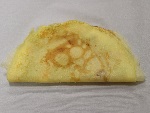 フライパンを熱してサラダ油(分量外)をうすく敷き、キッチンペーパーで余分な油をふき取ります。プレーン生地をレードル(お玉)で一杯弱流し入れます。フライパンを手早く回して薄く広げます。