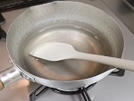 鍋に水を入れ、 ①を少しずつ振り入れてダマにならないように混ぜながら火にかけて溶かします。(ダマになった時は、裏ごして完全に溶かしてください)