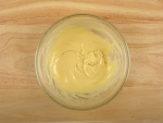 ①にときほぐした卵を少しずつ加え、ハンドミキサー(または泡だて器)で混ぜ合わせます。