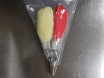室温でやわらかくしたバターをゴムベラで練り、粉糖を加えて更に練ります。牛乳を加えて混ぜます。(※色をつけたい場合、少量の水でといた食用色素を加えます。)絞り出し袋に入れて絞ります。