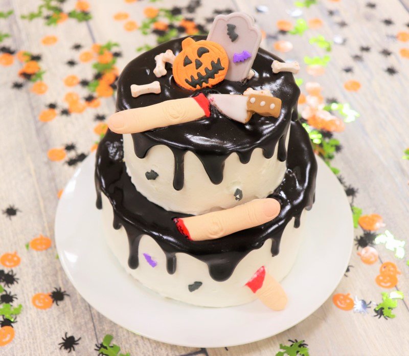 ⑥のケーキに⑧のグラサージュを垂らします。表面が固まったら、お好みのデコレーションをします。