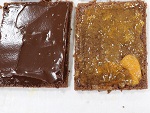 170℃に温めたオーブンで15~18分焼きます。天板からはずし紙をつけたまま網の上で冷ました後、端をカットしてから、約12cm×14cmに4等分します。
