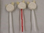 グラスなどにマシュマロポップがくっつかないようにたてて(またはクッキングシートの上において)、涼しいところで固めます。(ミミが取れないように注意!)