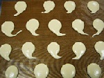生地を丸口金の付いた絞り袋に入れ、オーブン用シートを敷いた天板の上に間隔をあけて約3cmのおばけ型に絞り出します。