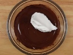 ①にチョコレートとチョコシロップを加え、溶かしながら混ぜ合わせ、粗熱をとっておきます。