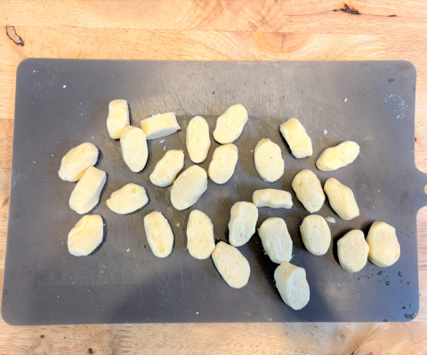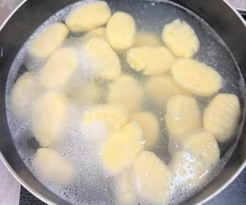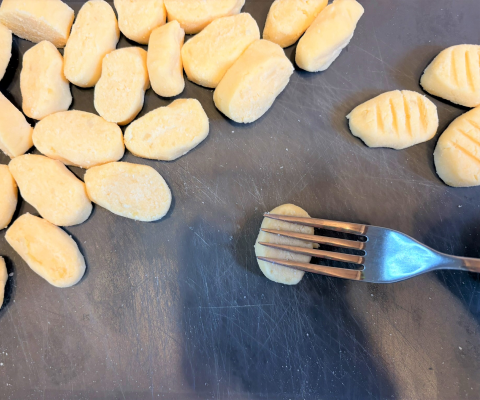 ・ニョッキとは主にじゃが芋、小麦粉、卵を使用した団子状の小さなショートパスタですが、今回は米粉を使ってさらにもちもちに仕上げました。