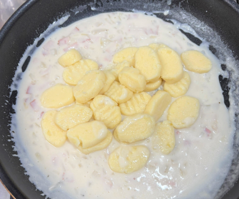 米粉のもっちり感がくせになるニョッキです。米粉で作るあっさりとしたホワイトソースとよく合います!