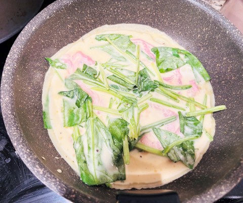 ほうれん草の代わりにニラでも美味しくお召し上がりいただけます。