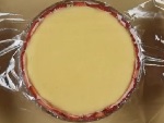 もう1枚のスポンジで蓋をして、ラップ材をして約2時間冷蔵庫で冷やし固めます。