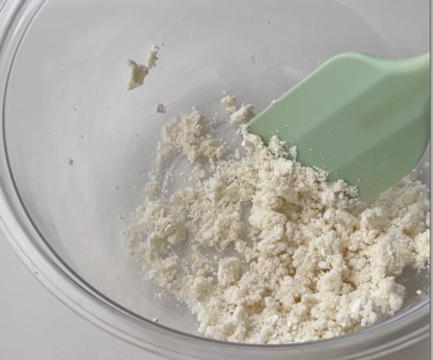 米粉(または白玉粉)と豆腐を手でこねて混ぜます。