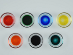 - 食用色素を付属のスプーンで耳かき1杯弱とり、水小さじ1/2(分量外)を加えて溶いておきます。まずは4色(赤・緑・青・黄)を作り、赤と黄を混ぜオレンジ、赤と青を混ぜ紫、青と緑を混ぜターコイズブルーを作り7色用意します。【A】