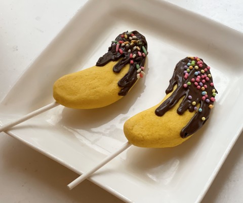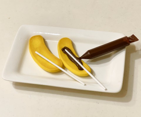 お祭りの屋台でよく見るチョコバナナ。それをクッキーで再現して、おうちでミニ縁日を楽しみましょう。