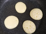 フライパンにの生地を直径約6㎝位になるように流し入れ、弱火で3分焼きます。