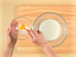 別の耐熱ボウルにバターと牛乳を入れ、600Wの電子レンジで約20秒温め溶かします。