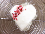 ケーキクーラーの上で③の全体に④をかけて、固まる前にフリーズドライいちごやピスタチオ、アラザンをトッピングします。
