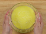 の生地にラップ材をして約1時間休ませます。※焼く直前に一度かき混ぜます。