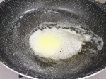 フライパン(直径上部約20cm底約15㎝)にバター20gとグラニュー糖30gを入れ、弱火で溶かし、グラニュー糖がふわっと盛り上がってきたら②とシナモンを入れて、焦がさないように様子を見ながら弱めの中火で煮ます。