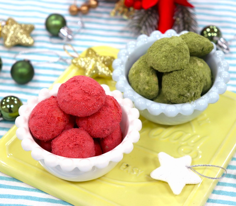 くり抜いたスポンジケーキでミニリースを作ってみました。残ったホイップクリームに食用色素(緑)で着色しています。