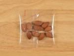 アーモンドは袋に少し切り込みを入れて、めん棒で細かく砕いておきます。