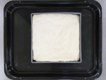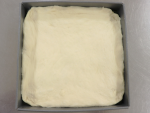 オーブン用シートの上で③の生地をめん棒で直径約20cm角に伸ばし、型に入れます。