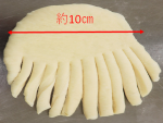 を約10×7㎝位の俵型に伸ばし、1/3位残しカードや包丁で細かくカットします。