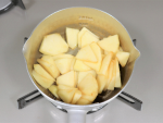 リンゴは芯を取り、皮を剥いてから5㎜厚のいちょう切りにします。