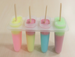 お手持ちのアイスバーの型に二色になるように①を2/3量を入れ、棒を差し込み冷凍庫へ入れます。