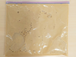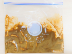 しっかりとチャックを閉じ、バットの上にのせて平らにし、冷凍庫で固まるまで約2~3時間冷やします。