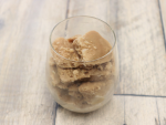 ③をタオルに包み、もみ(またはスプーンで崩し)崩しながらよく混ぜてグラスに入れます。※固くなりすぎたりして崩しにくい場合は、牛乳(分量外)を一緒に入れるとクラッシュしやすくなります。
