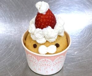「マフィンミックス」を使って手軽に作れる、サンタフェイスをデコレーションした小さなミニマフィンです。