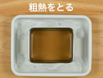 火を止め、バット(約110×90㎝)容器に①を静かに流し入れ、氷水を入れたバットの上において粗熱をとってから冷蔵庫で固めます。