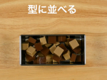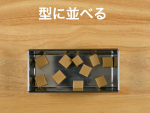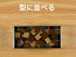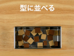 バランスよく、⑤をパウンド型に並べます。※カットした⑤の間になるべく隙間を作り、同じ色が重ならないようにするときれいに仕上がります。2段目からは1段目の隙間に斜めに入れると隙間があきやすくなります。