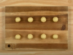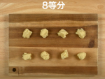 残りの生地を8~10等分にして丸めます。2つの生地は耳と鼻のまわりに使用します。大きめのくまを作りたい場合は8等分にし、小さめのくまを作りたい場合は10等分にしてください。