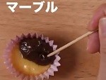 ※プレーン生地とココア生地を合わせるとマーブル生地が作れます。模様を作る時はプレーン生地とココア生地を楊枝で軽く混ぜ合わせます。